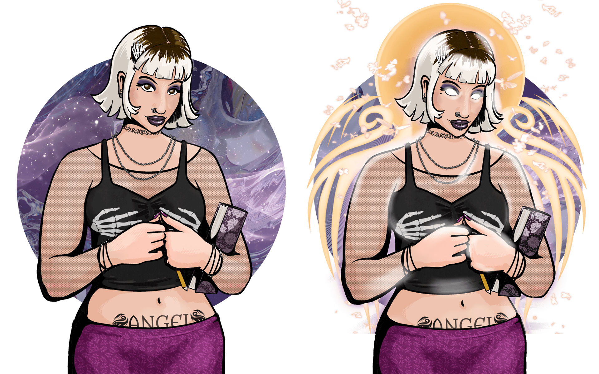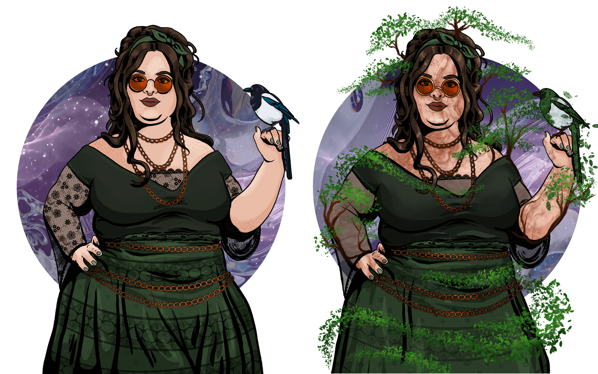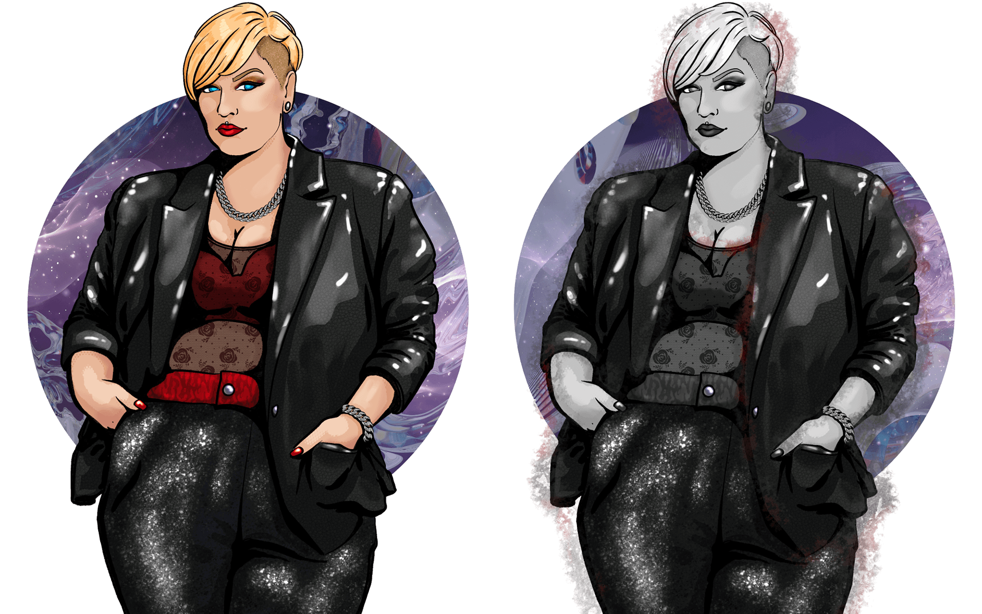 Drawn in Procreate. My style is characterized by realistic body proportions, rounded contour lines, and vivid colors.